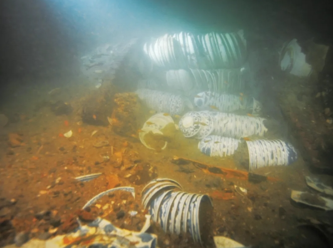 图6 水下考古调查发现的致远舰篆书白瓷餐盘