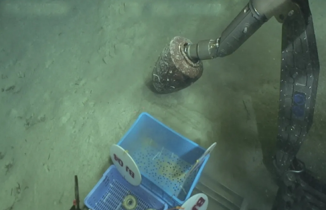 第四,将深海技术及其他相关技术系统转化为深海考古能力是深海考古方法论建设的有益尝试,是今后推进深海考古工作的必经关键环节,将会成为中国水下考古事业整体进步的重要契机。在开展的水下考古工作中,已经发现的水下遗址绝大多数位于100m以浅的范围。显然,文物分布状态的失衡与广大海域历史的真实情形不相吻合,既不能满足海洋历史的学术研究,也不利于可能存在的水下文物有效保护。在世界范围内,自20世纪60年代起,地中海海域便出现了对深海沉船的主动探索,这与科学意义上的水下考古起源几乎同步发生。深海技术的突破性进展,使中国深海考古的发展具有了技术支撑,变得现实可行。国家文物局考古研究中心与中国科学院深海科学与工程研究所于2018年1月成立“深海考古联合实验室”,组织实施了南海海域深海考古调查项目,借助深海勇士号载人深潜器,实现了在千米水下开展深海考古调查(图11~图13)。通过深海考古调查工作可以看出,因为深度原因,水下遗址较少受到人为与自然因素的外力破坏,寒冷低温厌氧环境使得历史遗存保存较好,海洋生物(微生物)对遗址破坏极少。但是,深海考古存在效率、成本、风险等因素,因此要极为谨慎地进行。近年,中国深海考古工作的尝试为今后在中国如何持续有效地开展深海考古提供了不可多得的经验,奠定了下一步的工作基础。