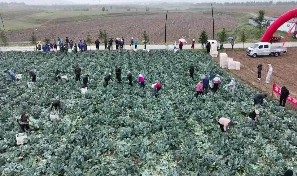 9月6日,在原州区头营镇蒋河村万亩蔬菜种植基地,一颗颗西蓝花鲜嫩饱满、青翠欲滴,格外惹人喜爱。原州区总工会主办的“提升劳动技能 助力乡村振兴”西蓝花采收竞赛活动正在这里举行。来自头营镇7个村的100名农民工在田间地头参加竞赛。