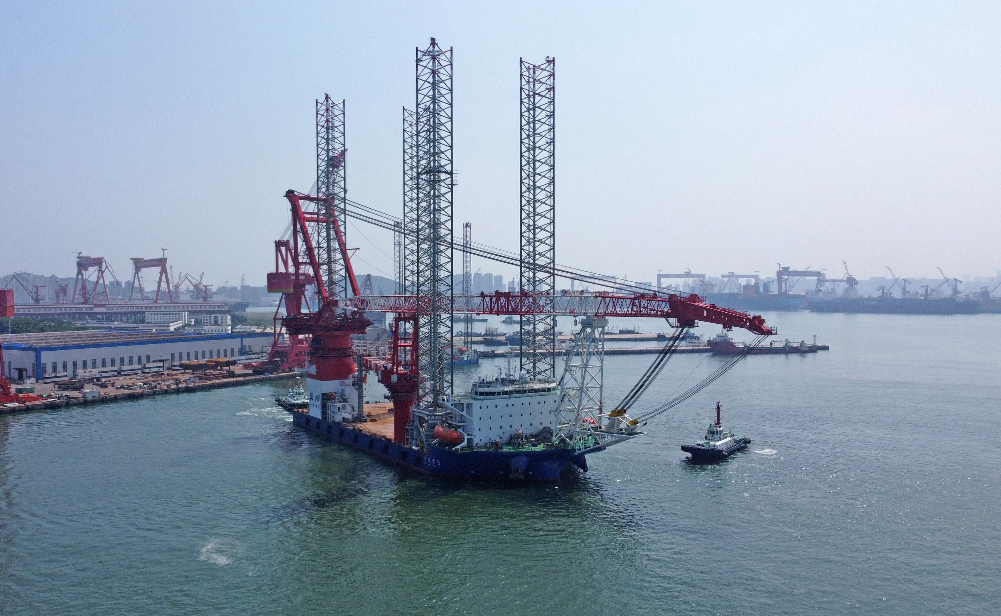 近日,我国新一代海工装备“重器”——“第四代+”海上风电施工平台“港航平5”,在青岛海西重机码头交付。该平台由天津港集团下属天津港航工程有限公司(以下简称“天津港航”)投建,是目前国内起升高度最高、综合起重能力最强、升降桩腿最长的自航自升式海上风电安装平台。它的建成为我国海上风电向深远海进军提供了可借鉴的解决方案。