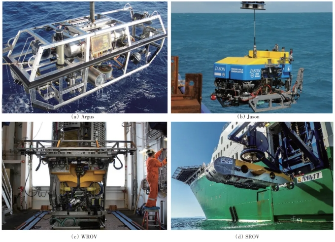ROV主要由能源系统、水面控制系统、光电复合缆和ROV本体组成,依据作业能力,一般可分为观察型与作业型2种。在水下考古作业中,观察型ROV主要用于水下遗迹的观察和拍摄,作业型ROV主要用于沉船残骸和掩埋文物的打捞。
