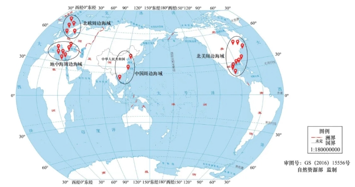 图1 基于深海装备的相关水下考古工作位置分布示意