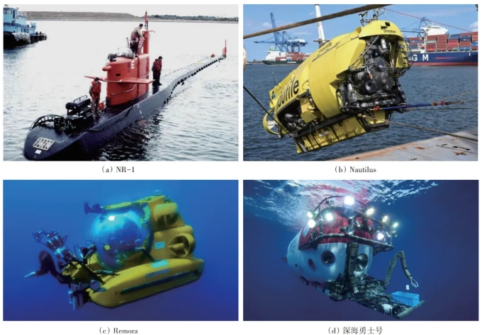 2018年,中国科学院深海科学与工程研究所探索一号科考船搭载深海勇士号HOV,在西沙群岛北礁海域开展了水下考古作业,将中国水下考古作业深度从几十米扩展到千米级,开启了中国水下考古事业的新篇章。2022—2023年,探索一号和探索二号科考船分别搭载奋斗者号和深海勇士号载人潜水器,在南海北部海域开展了一系列水下考古探测工作,发现了多处具有重大考古价值的海底遗迹。目前参与过水下考古工作的主要HOV如图3所示,包括NR-1、Nautilus、Remora和深海勇士号等。