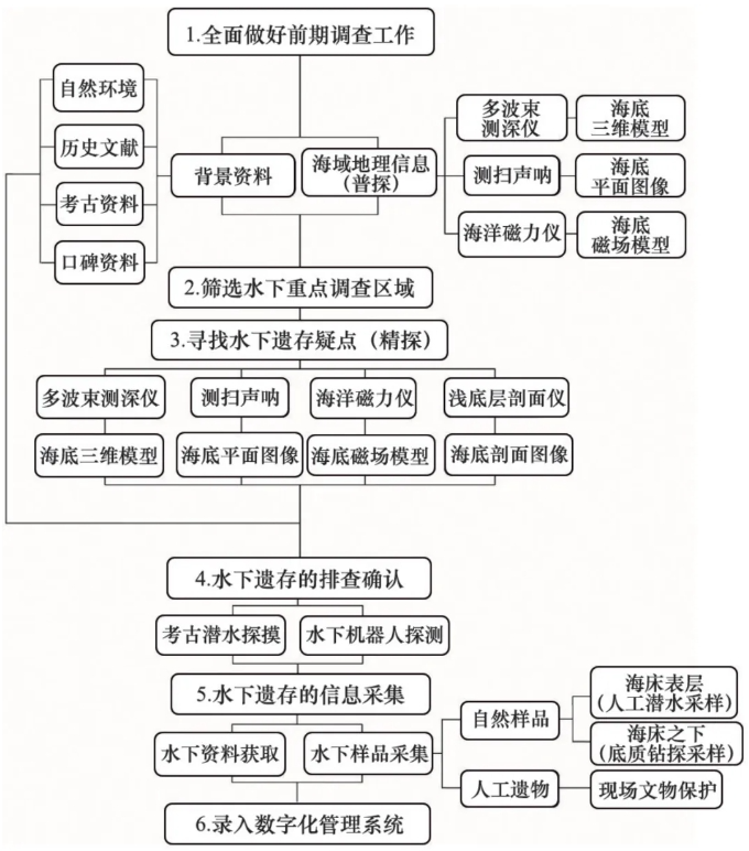为有效应对这些挑战,水下考古区域调查方法仍需不断完善。目前,应加强水下考古区域调查方法的应用性研究,积极引入新的技术手段和设备,如无人潜水器、遥感技术等,以更加高效、准确地获取水下文化遗产的信息,注重跨学科合作和国际合作与交流,借鉴其他学科的研究方法和理论,以丰富和完善区域系统调查的方法论体系。