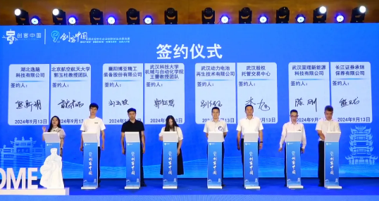 活动现场,还举行了湖北“创客中国”大赛“四链融合”服务案例签约仪式。武汉理工大学、武汉股权托管交易中心、长江证券、华工产业技术研究院等12家知名高校、金融机构及行业骨干企业代表分别与12个参赛项目现场签约,有力促进了产业资本、技术、服务等社会资源向优质创新项目集聚,带动了企业协同创新和科创成果加速转化。