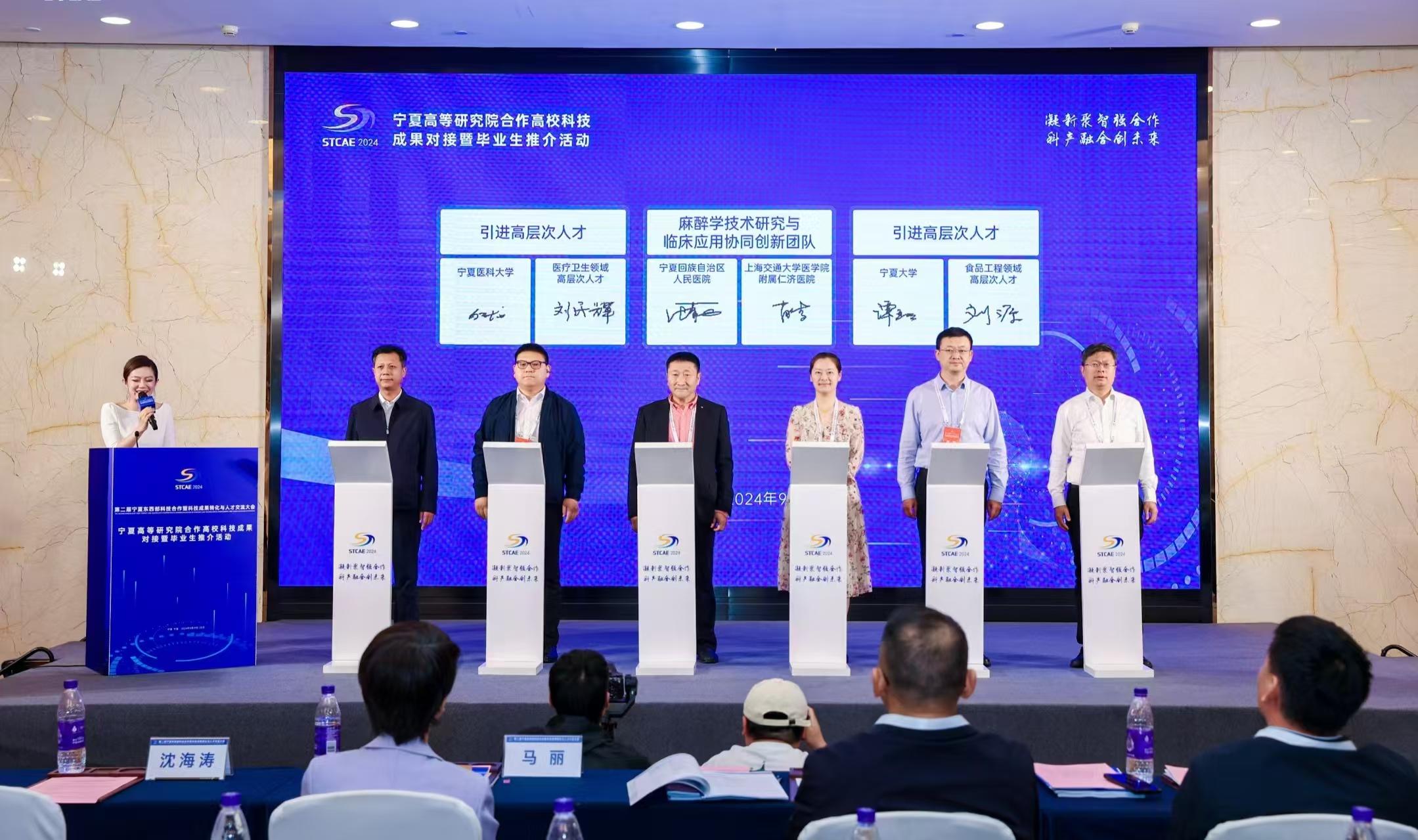 对接活动上签约了8项校企合作及自治区柔性引进创新团队和高层次人才项目,其中宁夏灵州奶牛科技研究院与西北农林科技大学签署了《高产奶牛体外胚胎繁育技术推广》合作协议,青铜峡市祥云皮草有限责任公司与四川大学签署了《基于梯度反应生物质鞣剂协同锆鞣的滩羊皮绿色制造技术》合作协议,宁夏黄河中药材有限公司与天津科技大学签署了《果蔬预制菜加工关键技术研究与产业化示范项目》合作协议,宁夏伟创药业有限公司与华东理工大学签署了《电子级DMSO清洗剂连续化生产工艺开发》合作协议,宁夏回族自治区人民医院与上海交通大学医学院附属仁济医院签署了《麻醉学技术研究与临床应用协同创新团队》合作协议。(记者 赵婵莉 孙振星 文/图)