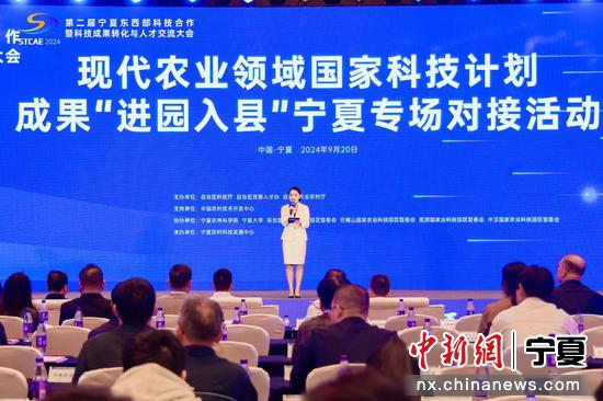 9月20日,由宁夏科技厅、宁夏党委人才办、宁夏农业农村厅主办的第二届宁夏东西部科技合作暨科技成果转化与人才交流大会——现代农业领域国家科技计划成果“进园入县”专场活动在银川市举办。