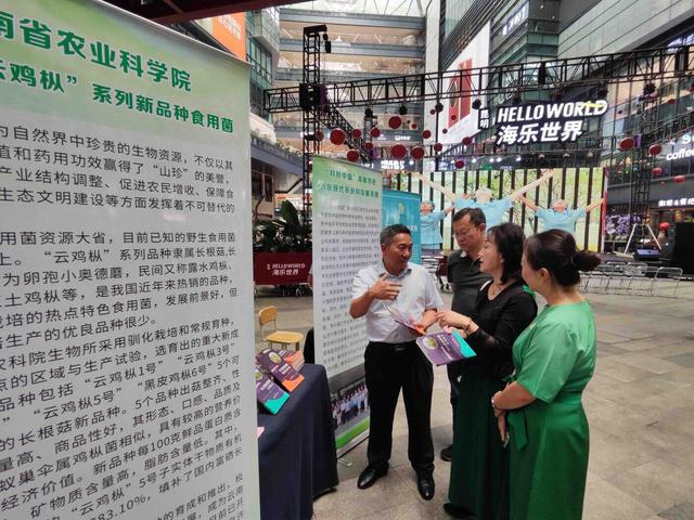 此次活动,科技服务团重点聚焦服务云南面向南亚东南亚科技辐射中心建设和高原特色果蔬产业发展,由团长刘光华带队组织服务团成员以及云南天泰农业发展有限公司代表,向参加活动的人员发放《特色经济作物实用技术》《常见经济作物种植技术问答》2本面向南亚东南亚辐射中心农业科普丛书、解答公众农业相关知识;向公众介绍了由云南省农业科学院生物所驯化选育的“云鸡枞”系列新品种食用菌;同时展示了柠檬、百香果、番茄等部分云南精品果蔬。