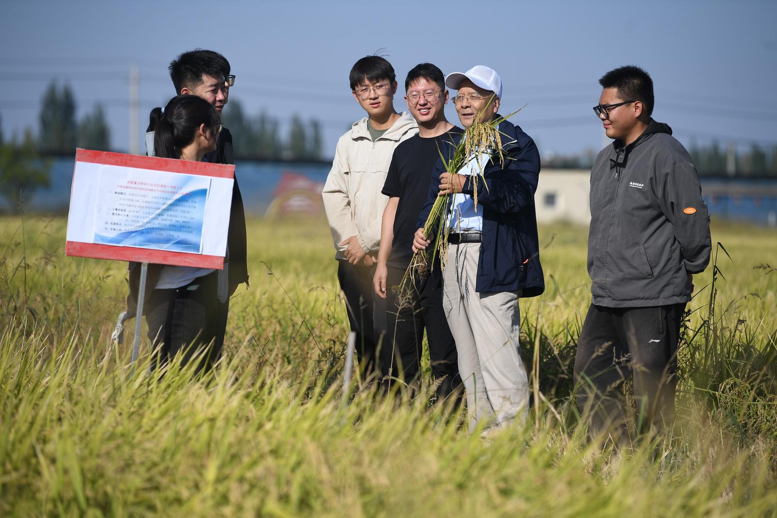 田军仓教授摸着手中沉甸甸的水稻,深感欣慰。