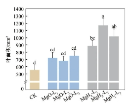 图9 MgH2、MgO包衣对大豆幼苗叶面积的影响