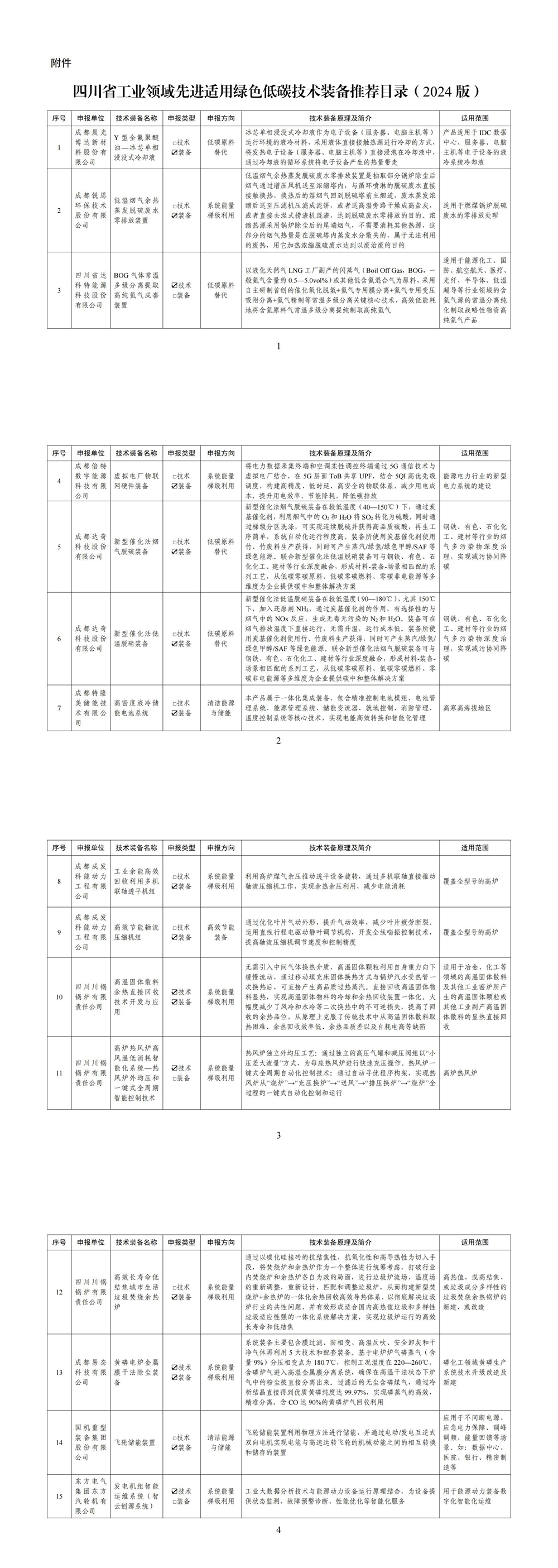 《四川省工业领域先进适用绿色低碳技术装备推荐目录(2024版)》(2024年第40号)
