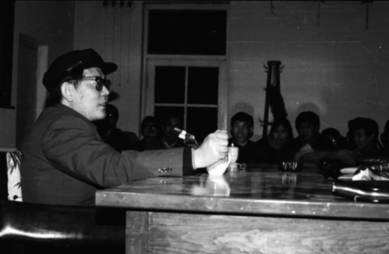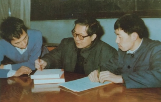 图3 周光召在指导研究生学习(中为周光召,右为吴岳良)