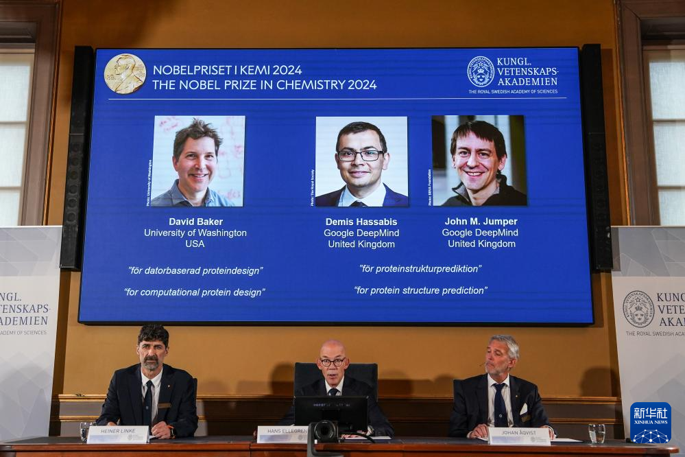 10月9日,瑞典皇家科学院揭晓了2024年诺贝尔化学奖的归属。美国华盛顿大学科学家戴维·贝克因在蛋白质设计方面的贡献,荣获该奖项一半的奖金;另一半奖金则由谷歌“深度思维”公司创始人、英国科学家德米斯·哈萨比斯和该公司美国科学家约翰·江珀共享,以表彰他们在蛋白质结构预测方面的成就。