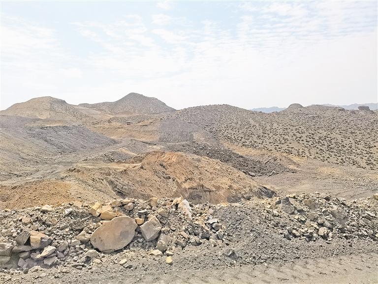 郭东山巡查的粉石沟发源于香山北麓,是这片区域的山洪沟之一。这里之前是当地沙土采挖的主要区域,十多年来,这里的矿产企业的开发使得周遭环境逐渐恶劣。自2021年起,中卫市沙坡头区严把矿山开采秩序,粉石沟剩余矿产企业中的大部分也因生产管理不规范被取缔关停,这片废弃矿山逐渐沦为附近群众乱倒垃圾的场所。