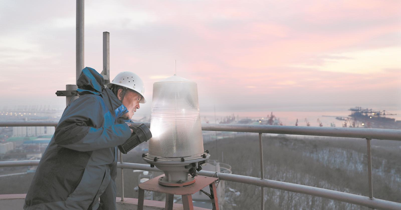 在鲅鱼圈港,高高的台子山灯塔就耸立在墩台山上。20多年前,40出头的王洪安来到台子山灯塔,成为这里的一位灯塔守护人。由于他工作认真负责,为人厚道朴实,领导和同事都亲切地称他“王师傅”。