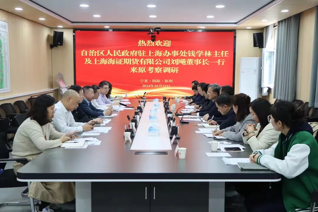 10月22日,自治区人民政府驻上海办事处主任钱学林及上海海证期货有限公司董事长、总经理刘飚一行来原州区考察调研金融助农工作并召开座谈会,共叙助农深情、共谋合作发展,助推乡村全面振兴。区委副书记、区长马波出席会议。