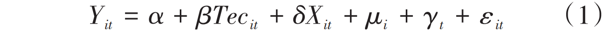 式中,Yit表示第i个省份t时期的粮食生产韧性;Tecit表示农业科技创新;Xit表示随时间变化影响粮食生产韧性的控制变量;μi表示个体固定效应,γi表示时间固定效应,εit表示随机误差项;α为常数项,β和δ为待估计系数。