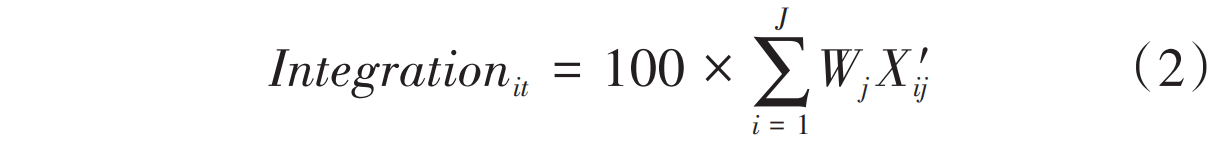 式中,W为根据熵值法计算得到的第j项指标的权重,X是第i个地区第j项指标标准化后的数值。