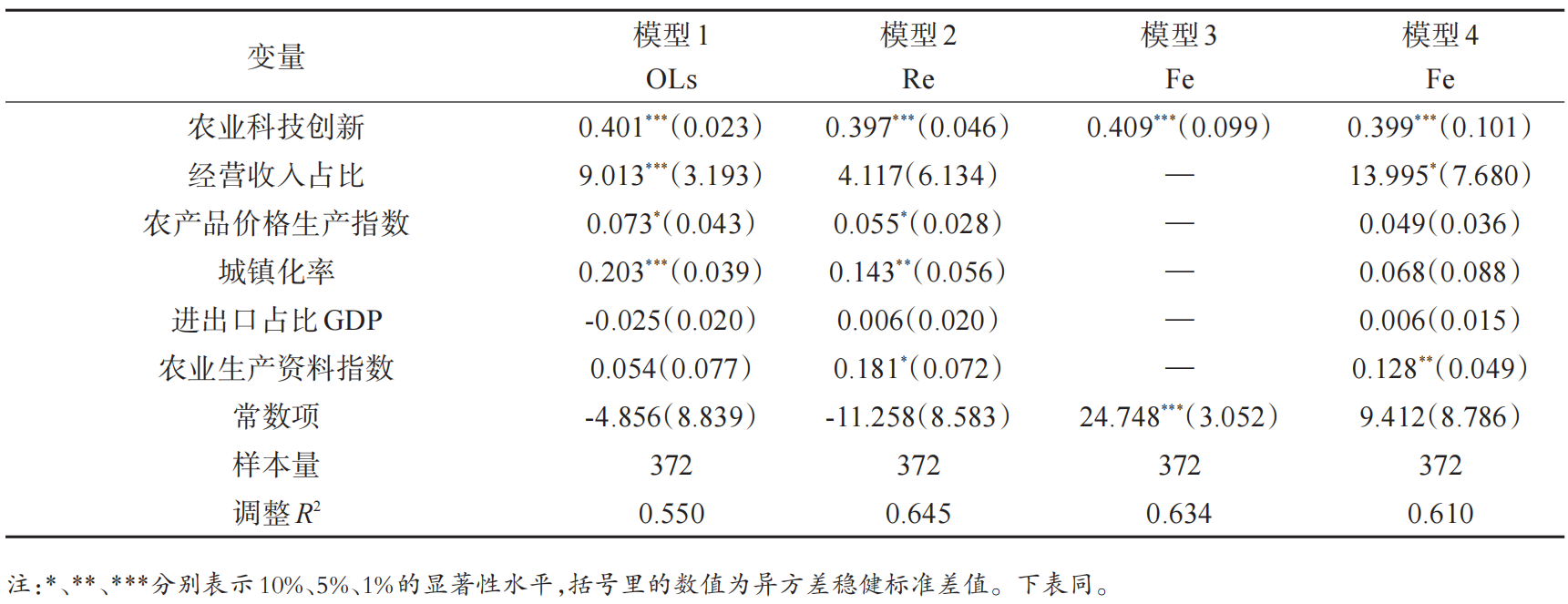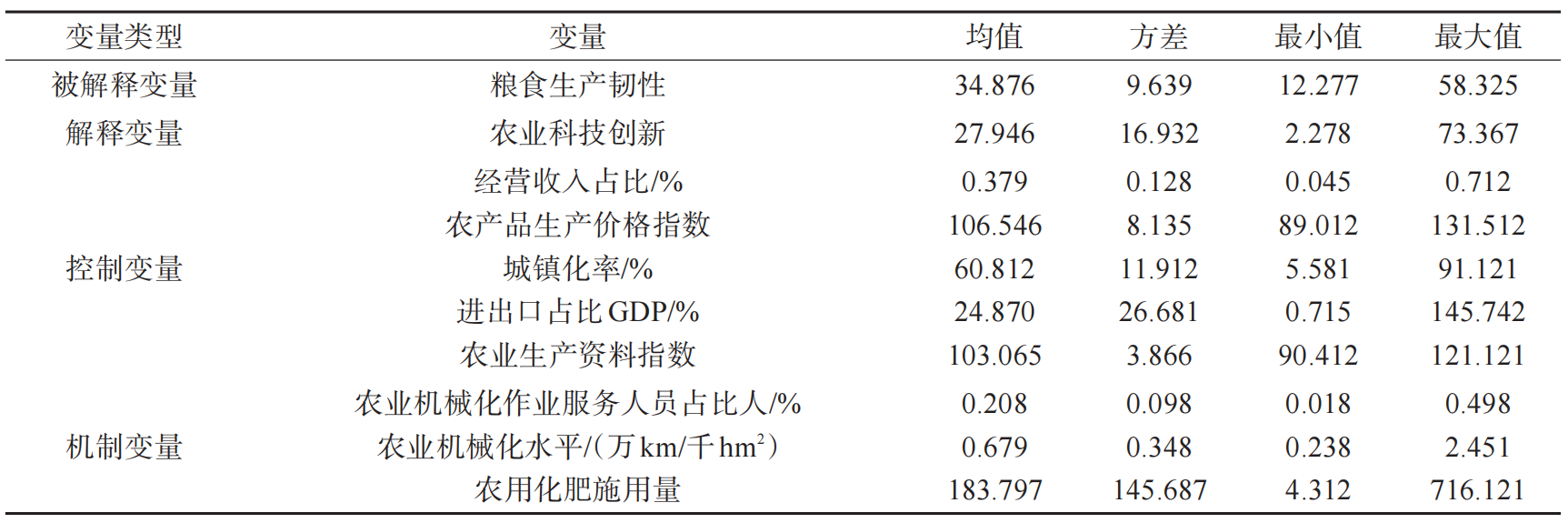 式(1)控制了双向固定效应,估计系数β即为农业科技创新对粮食生产韧性的影响。