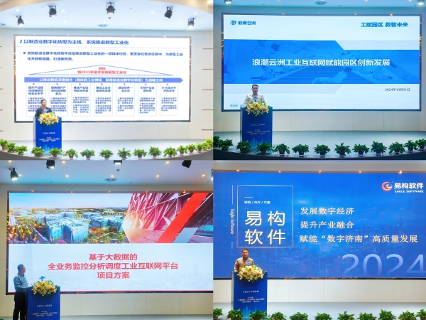 中国信通院两化所数字化转型部主任刘棣斐作了《新形势下工业互联网与数字化转型发展》的主旨演讲。浪潮云洲分享了智慧园区、工创园区及工业互联网园区的解决方案,以及德州齐河工业互联网园区、日照岚山化工产业园、立威生物设备远程运维服务等典型示范。山东易构软件技术股份有限公司介绍了智慧车体工厂安全栓AI智能监管平台、机电运维一体化平台、数据可视化平台等应用场景。山大地纬软件股份有限公司介绍了数字监控平台、数据分析平台、辅助决策平台等解决方案。
