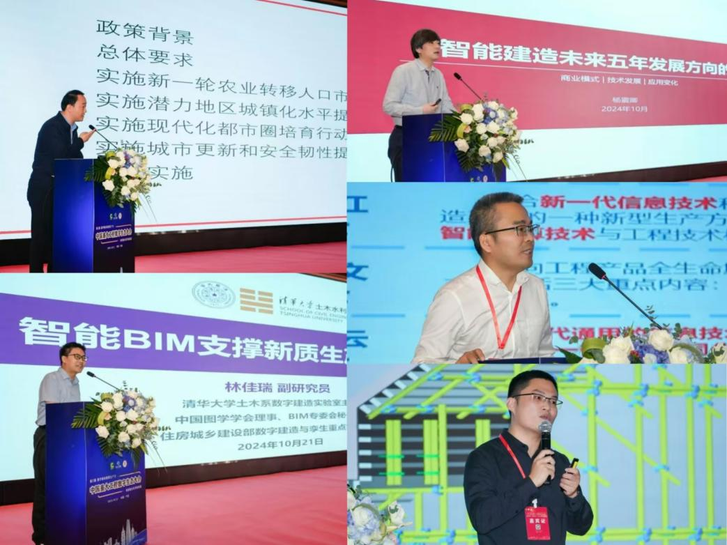 与会专家先后以《深入学习新型城镇化重要论述推进中国式现代化建设》《高风险隧道智能建造技术重大创新与规模化工程应用》《智能BIM支撑新质生产力发展》《智能建造未来五年发展方向的思考》《智能建造实践交流——谈提高全要素数字化水平》为题作交流。