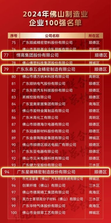 悍高集团领跑家居五金行业,荣登佛山制造业百强