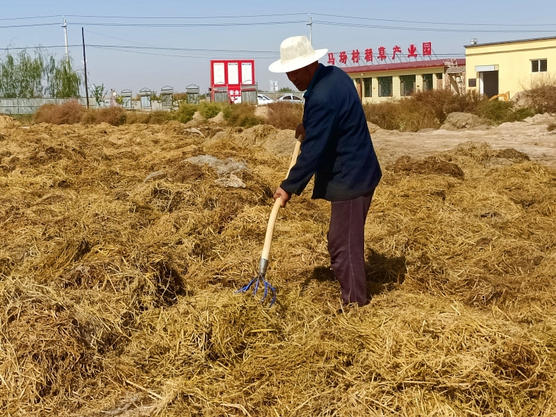 2014年,马明和从固原市西吉县“插花移民”到马场村。自村里建起了稻草产业园,他每年3月至10月就在稻草产业园上班。“在这里上班,每月有3000多元的工资收入,再加上土地流转费,日子好着呢!”正在翻晒稻草的马明和说。