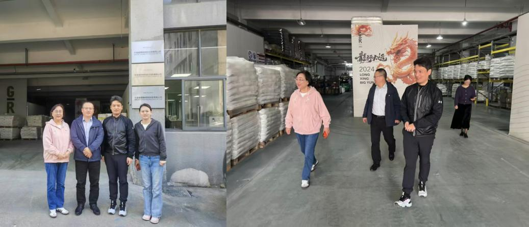 第一站来到了宁波爱甬新材料科技有限公司,受到了公司夏行总经理的热烈欢迎,并参观了企业的生产车间和仓库。
