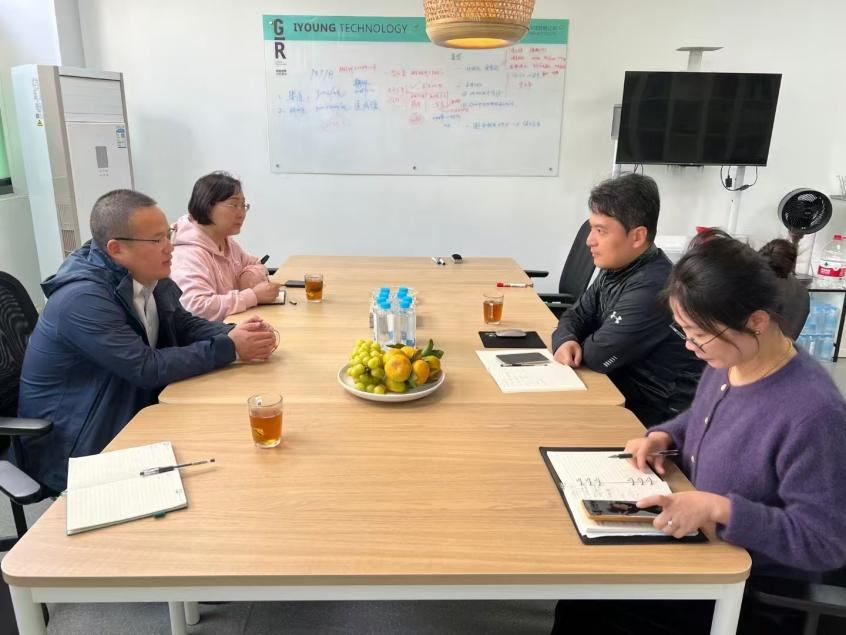 在会议室召开了交流座谈会,夏行总经理介绍了企业,爱甬公司20多年致力于功能性粉末涂料的研发和生产,为客户提供粉末涂料一站式解决方案,拥有五项发明专利,二十多项实用新型专利。目前行业同质化竞争严重,企业积极创新谋发展,以差异化产品在市场红海中探索开辟新的蓝海。