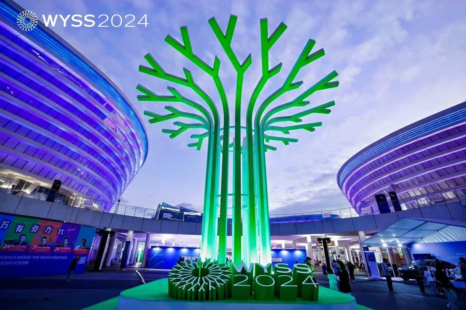 图为2024世界青年科学家峰会主会场外的峰会标志建筑——“科学之树”。
