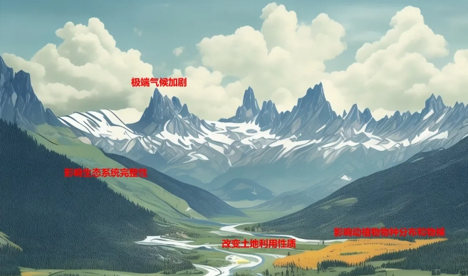 气候变化增加了极端天气事件的频率和强度,例如极端干旱、暴雨、火灾等,这些都可能对国家公园的生态系统、物种及其栖息地以及自然景观造成破坏。极端气候还会影响国家公园的访客数量,这与国家公园所在的地理位置和提供的娱乐活动通常密切相关。关于极端气候对于中国国家公园等自然保护地影响的研究还比较少,一项对于西南生物多样性热点地区的研究发现,1961—2019年,横断山区的国家级自然保护区对极端气候变化更为敏感,尤其是极端温度的影响;类似的研究也发现云南轿子山国家级自然保护区1999—2016年归一化植被指数与极端气温指数密切相关,并建议应加强自然保护地极端气候变化风险评价和监测预警等技术研究。