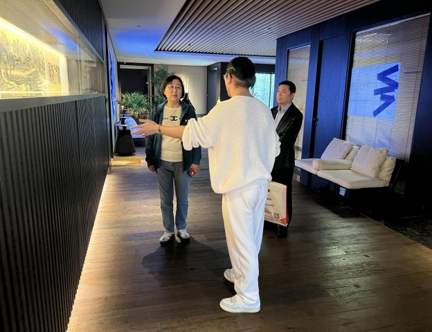 在浙江摩根集团有限公司与邱宝亮人力资源部经理交流,并参观产品展示厅