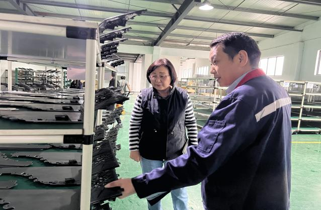 在宁波铭辉汽车零部件有限公司与褚孟统总经理、叶常青常务副总交流,并参观涂装生产线