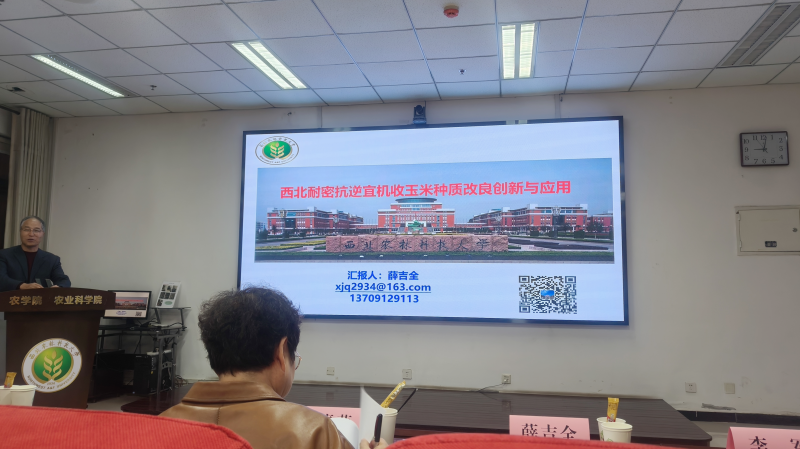 借总结会议之际,西北农林科技大学的三位知名教授——薛吉全、聂小军和王晓明作了专题学术报告。薛吉全以其深厚的学术造诣和丰富的实践经验,为与会者带来了关于“西北耐密抗逆宜机收玉米种质改良创新与应用”的报告。从种质资源群体构建、种质创新和利用等多个方面进行了深入剖析,展示了西北农林科技大学在玉米育种领域的深厚底蕴和最新研究成果,也为当前向日葵育种工作提供新的思路和方法。