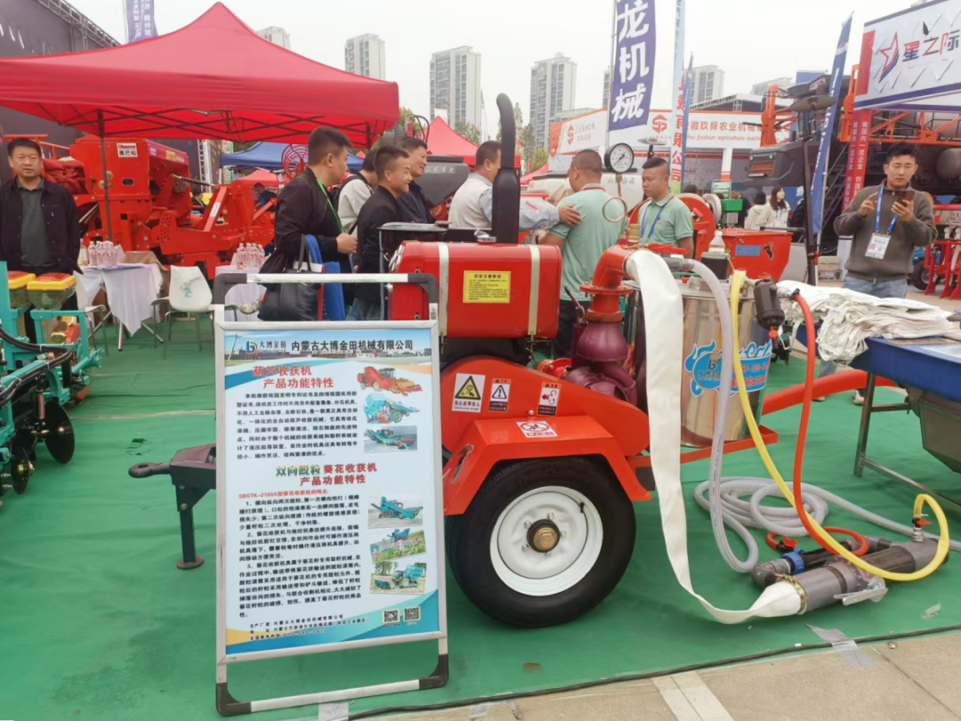 巴彦淖尔市大博金田机械有限公司的精量铺膜点播机和农田地表水肥一体化泵前自动反冲洗过滤装备亮相本次展会。