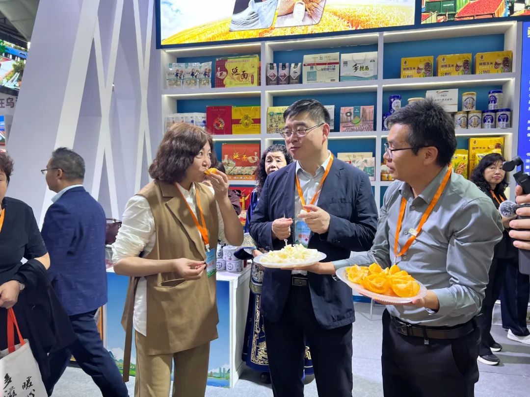 开幕式上进行了内蒙古自治区玉米、大豆、马铃薯、肉羊、奶业、肉牛、羊绒等优势特色产业链招商推介和农牧业领域重大创新成果发布,农牧业创新成果发布包括了农业主推技术、优良作物品种、优良牲畜品种、农畜产品加工、优势特色农机等五大类50项,不仅有享誉区内外的乌珠穆沁羊、华西牛、蒙豆1137、巴麦13等当家良种,也有我们自主创新的移动式引黄滴灌水肥一体化设备、自走式沙障铺设设备等先进农机装备,更有羊皮胶原蛋白肽食品化、羊尾油综合利用等精深加工技术,这些新质生产力的应用,为内蒙古农牧业高质量发展增添了新的活力与动力。