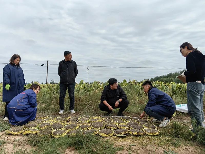 2024年高产竞赛活动测产工作共为期半个月,按照方案要求,采用理论测产和实收测产相结合的方法,逐一开展旗县区自测、盟市核验、自治区复测程序。9月13日-25日,由市农牧局种植业科、市农发中心、市农牧业科学研究所相关专家及旗县区技术成员共同组成测产组,先后对7个旗县区上报的20个高产参赛地块进行现场取样,开展实地理论测产,包含向日葵田间株距、行距、花盘平均直径、单盘结实粒数和田间有效株数等9个测定要素,最终对各个高产参赛点的理论测产结果进行分析、汇总、排序。