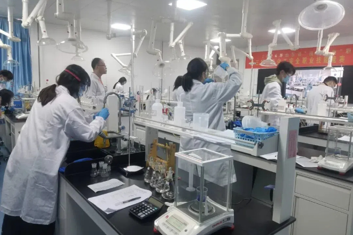 11月28-30日,有机合成工赛道在淄博市技师学院开赛。赛道设职工(教师)组和学生组两个组别,共有来自相关院校和化工企业的三十余支代表队参赛。比赛内容包括专业理论知识、仿真操作、技能操作3个模块。理论知识考核包括职业卫生健康、化工环保安全、个人安全防护、法律法规、职业道德及守则、应急救援处置、有机合成技术专业知识等内容;仿真操作考核包括生产准备、生产操作、故障判断与处理、设备维护与保养等内容;技能操作考核包括化学分析和有机合成两部分。