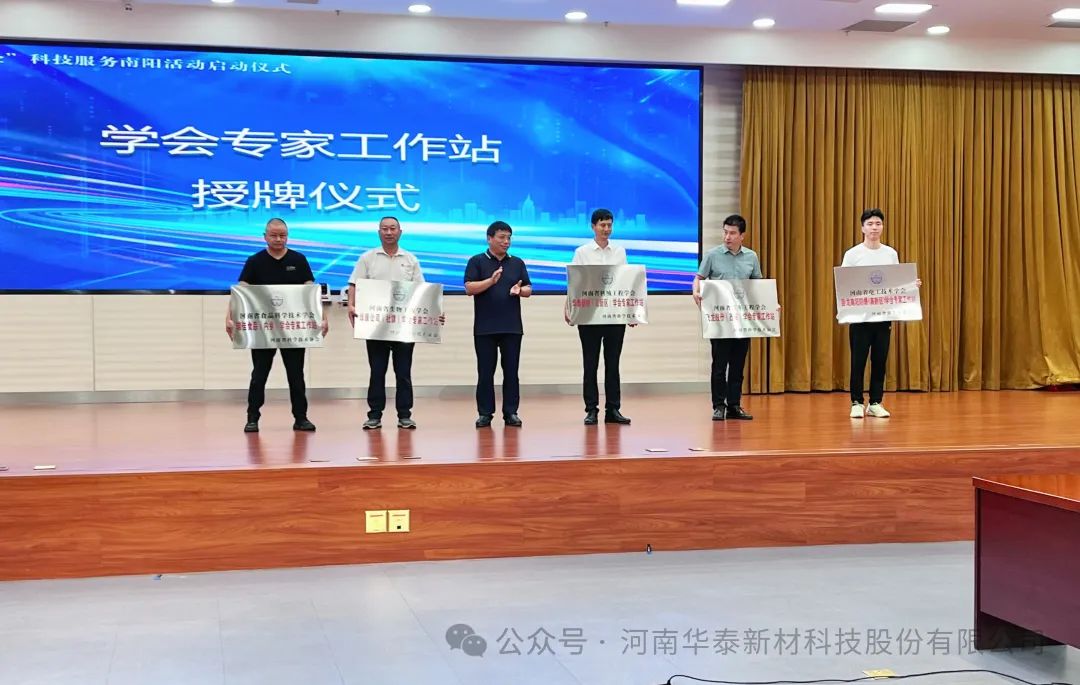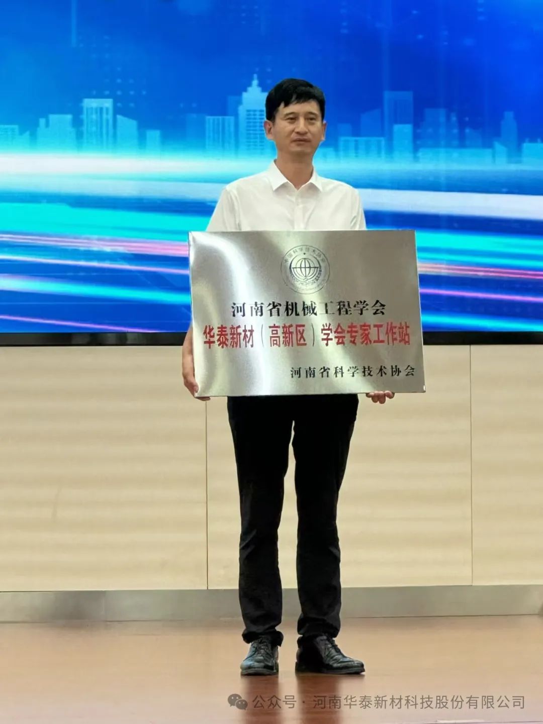 河南华泰与省机械工程学会现场签约,共建华泰新材(高新区)学会专家工作站。由河南省科协党组书记王新会授牌。