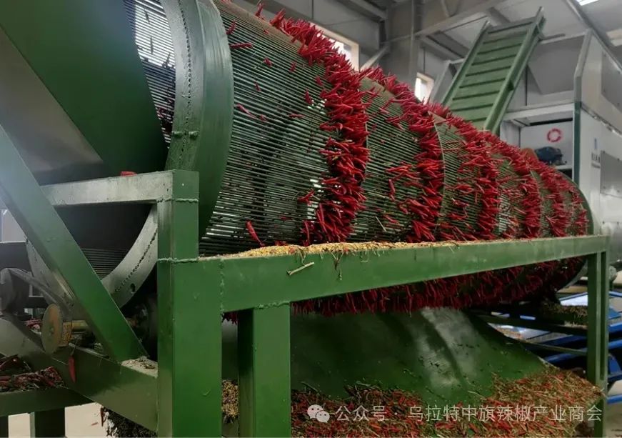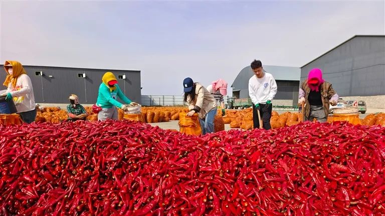 临河区白脑包镇永清村辣椒种植基地今年也获得丰收。“我们的辣椒亩产能达到1100斤至1200斤。”永清村村民刘玉龙说。在距离辣椒种植基地不远处的永林农民专业合作社大院内,一派热火朝天的劳动场景——数台铲车往来穿梭,把院内堆积如小山的辣椒铲入剪把机。经过剪把、色选、过筛、烘干、装袋,这里的辣椒统一发往外地。“目前,合作社加工出来的成品净货每吨售价16000元,主要销往河南、四川、贵州、上海等地。”合作社负责人杜勇说。