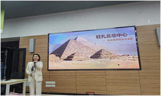 华商律师事务所涉外委国际业务部负责人贺俊则围绕“驻扎北非中心—埃及投资政策与流程”进行了详细介绍。他从埃及的政策环境、市场机遇、产业优势等方面入手,深入解析了埃及的投资环境,并介绍了企业在埃及投资的具体流程和注意事项。这一课程为有意进军埃及市场的企业提供了全面的指导。