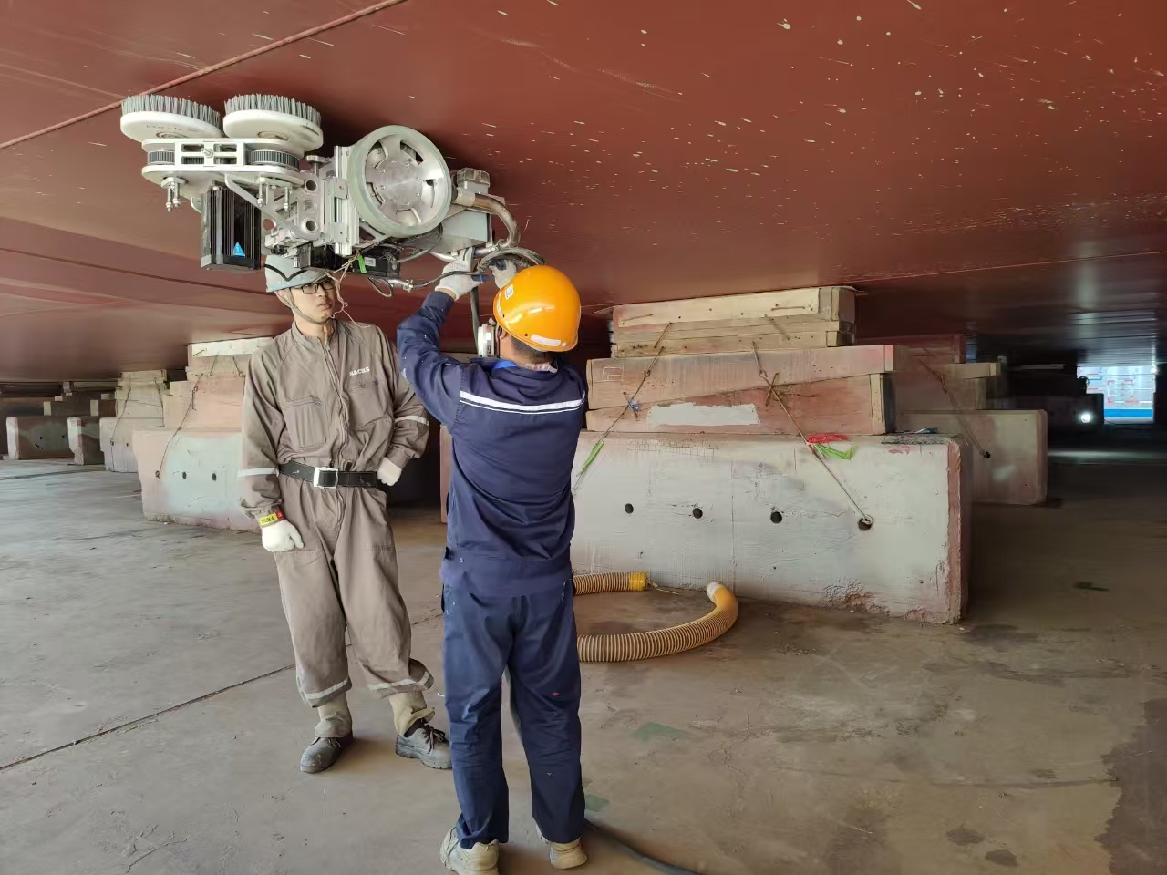 目前,团队积极与中石油、招商轮船、中船、中远、中广核等大型企业集团建立合作关系。永磁吸附技术已广泛应用于石化、船舶、电力、桥隧、快消等领域典型立面的除锈、拉毛、喷漆、检测、清洁维护等作业场景,同时该技术在海工、军工、市政等行业也有很大应用前景。张明路坦言,团队机器人在某种意义上来说就是新型生产工具,原来工人拿着喷枪站在高架车上喷漆,现在是工人拿着遥控器在地面远程操控机器人作业,这种形式的转换可以说是对习近平总书记强调的“新质生产力”最准确、最直观的诠释。