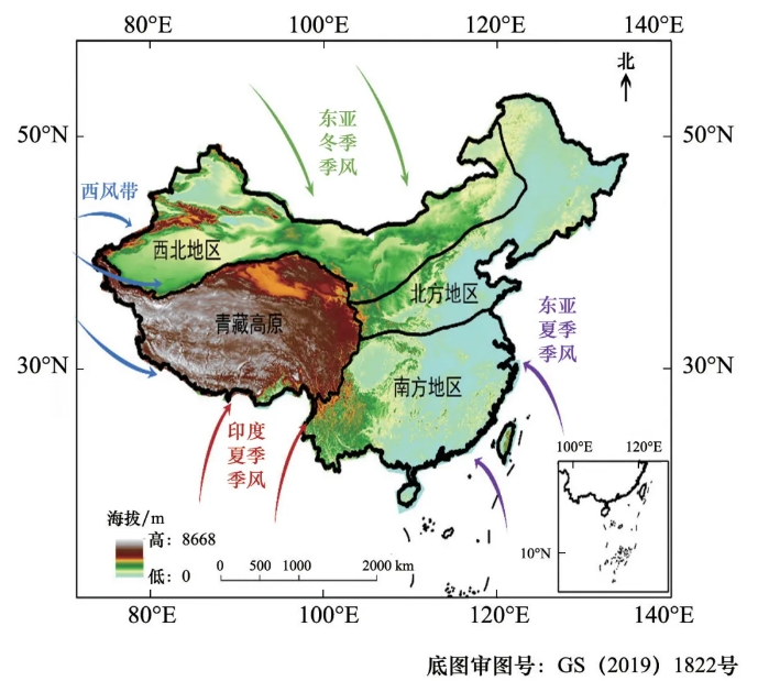 中国地处东亚季风区,地形复杂,气候环境多样(图1)。在经济社会快速发展的同时,也面临着巨大的碳减排压力。伴随着全球变暖的加剧,中国的极端气候事件也在增加,给社会、经济和自然生态系统造成了巨大损失。例如,自1990年以来,极端气象灾害每年造成中国国内生产总值(GDP)损失2.37%。2013年夏季中国东部的严重热浪造成了约590亿元的直接经济损失。因此预估未来中国气候和极端气候,有利于应对气候变化政策的制定。