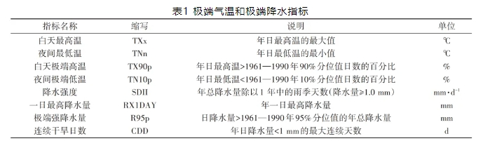 本研究选用IPCC AR6关注的极端气候指标(表1),包括4个极端气温指标:白天最高温(TXx)、夜间最低温(TNn)、白天极端高温(TX90p)和夜间极端低温(TN10p);4个极端降水指标:降水强度(SDII)、一日最高降水量(RX1DAY)、极端强降水量(R95p)和连续干旱日数(CDD)。使用Climate Data Operators软件对数据进行质量控制并计算极端指标。为方便比较降水及极端降水强度指标,在分析时将Pr、SDII、RX1DAY和R95p单位换算成相对于历史时期的距平(%)。