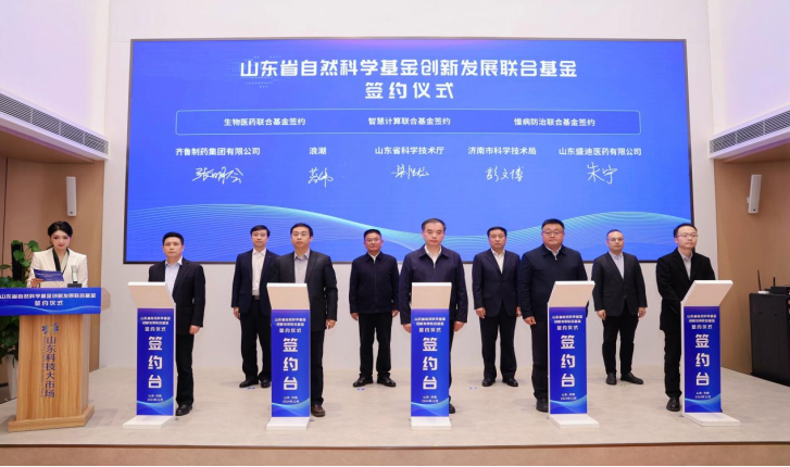 此次济南市签约成立的三支联合基金,智慧计算联合基金由省科技厅、市科技局和浪潮信息共同出资,资助期内总额度1亿元,重点围绕服务器系统设计、算力效能和高可用性等方向突破关键核心技术短板,为新一代信息技术产业和数字经济发展提供驱动力。生物医药联合基金由省科技厅、市科技局和齐鲁制药共同出资,资助期内总额度5000万元,重点围绕抗肿瘤精准治疗药物设计与先导化合物发现、抗体与核酸药物关键技术、靶向给药系统及新型制剂等开展研究。慢病防治联合基金由省科技厅、市科技局和山东盛迪医药共同出资,资助期内总额度5000万元,重点支持在自身免疫疾病、代谢性疾病、镇痛镇静等领域,开展疾病靶点发现、创新药早期研发相关研究,预期组建一批优势团队,加强基于社区人群的重大慢病干预研究,推进健康山东建设。