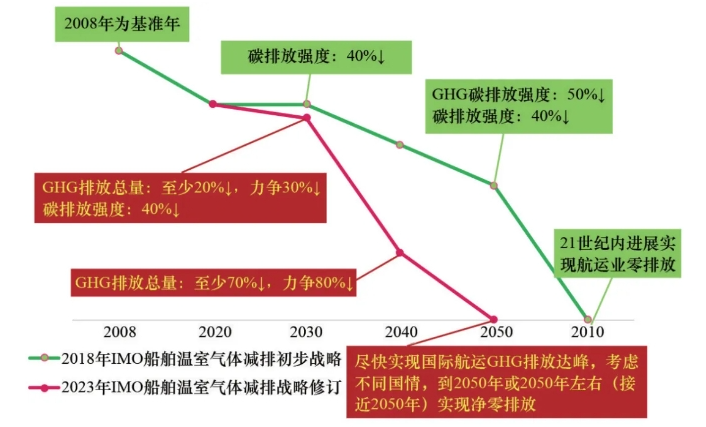 图1 2023年船舶温室气体减排战略与2018年初步战略对比