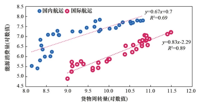 图5 中国水运货物周转量与能源消费量相关关系(数据来源:《中国交通年鉴2022》)