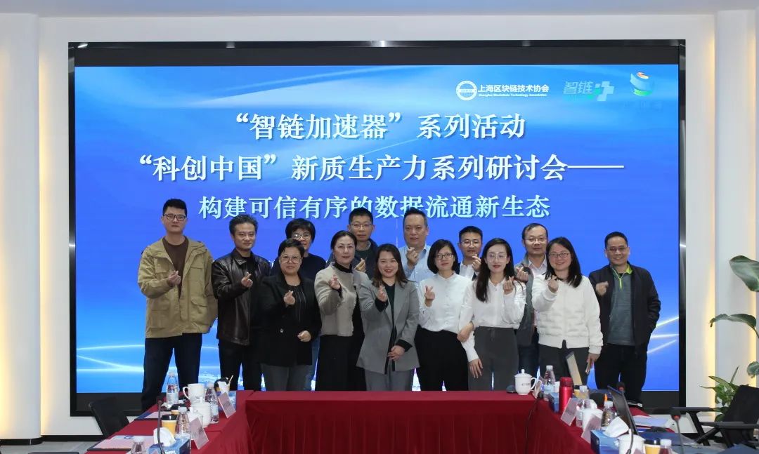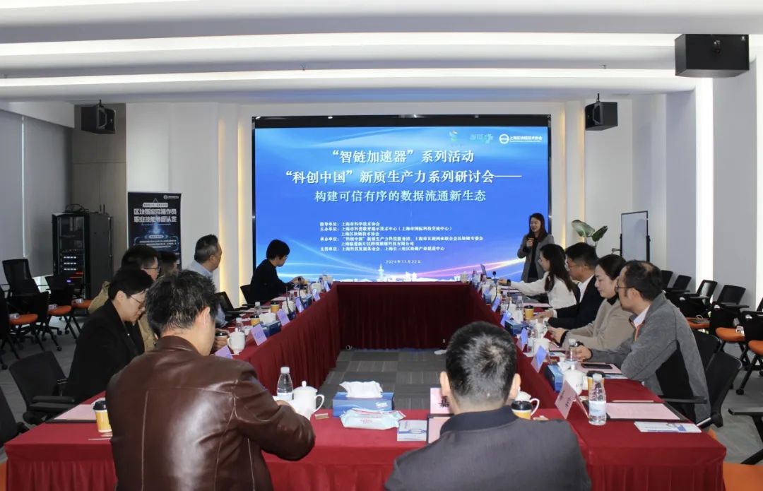 11月22日,由上海市科学技术协会指导,上海区块链技术协会、上海市科普教育展示技术中心(上海市国际科技交流中心)联合主办,上海科技发展基金会、上海长三角区块链产业促进中心支持的“智链加速器”系列活动:“科创中国”新质生产力系列研讨会——构建可信有序的数据流通新生态在上海临港新片区跨境数据科技有限公司(下称跨境数科)举办。
