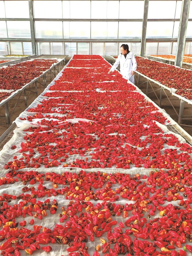 宁夏泰金种业工作人员在晾晒成品果实。