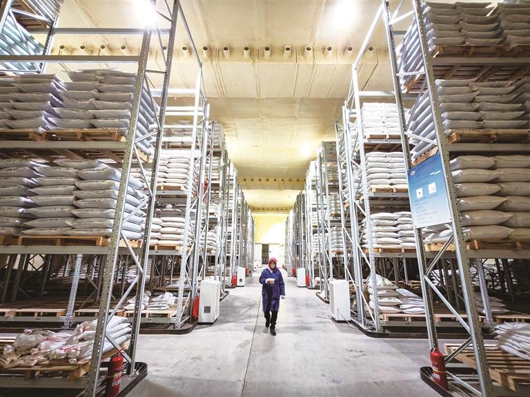 宁夏泰金种业仓库中经过改良的农作物优良种子等待批量种植。